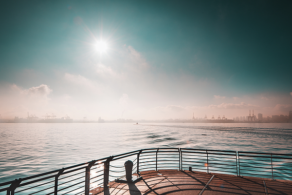 A Lovely Foggy Morning Burrard Dry Dock North Vancouver facing Vancouver British Columbia Canada in the far away horizon. This view is from North Vancouver looking south from the Lonsdale side.